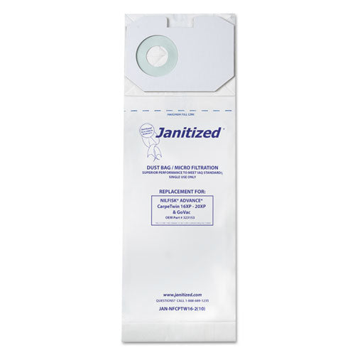 Vacuum Filter Bags Designed to Fit Nilfisk CarpeTwin Upright 16XP/20XP, 100/Carton-(APCJANNFCPTW162)